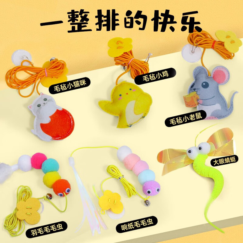 hoopet逗猫棒猫咪荡秋千挂门猫玩具自嗨解闷神器小猫幼猫自娱自乐超长挂门式昆虫猫逗棒布偶猫玩具弹力 六件套-挂门自嗨玩具