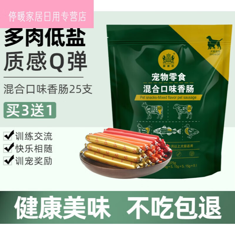 耐威克(Navarch)宠物狗狗零食火腿肠鸡肉牛肉香肠泰迪小型大型犬成幼犬训 375g 鱼肉味