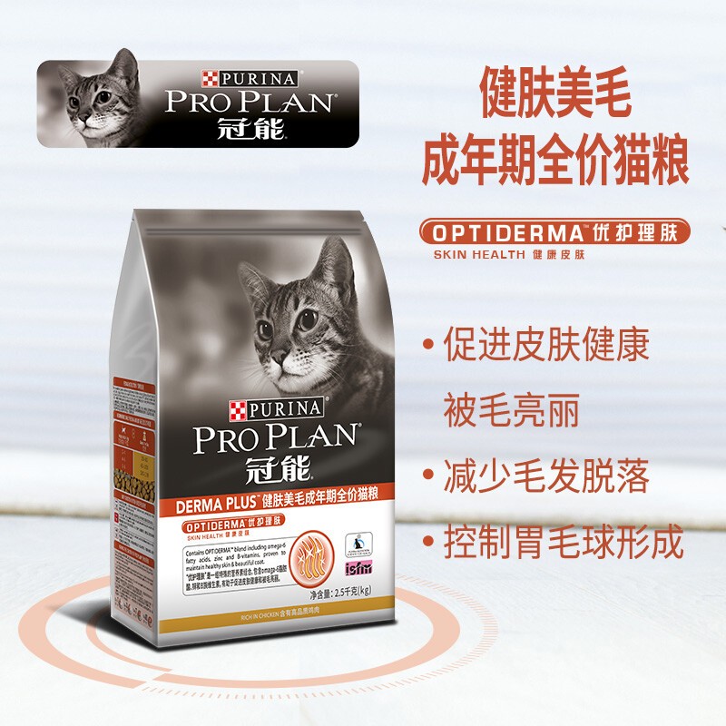 冠能(PRO PLAN)宠物成猫猫粮功能猫粮全价猫粮英短美短布偶猫咪主粮 【健肤美毛】2.5kg