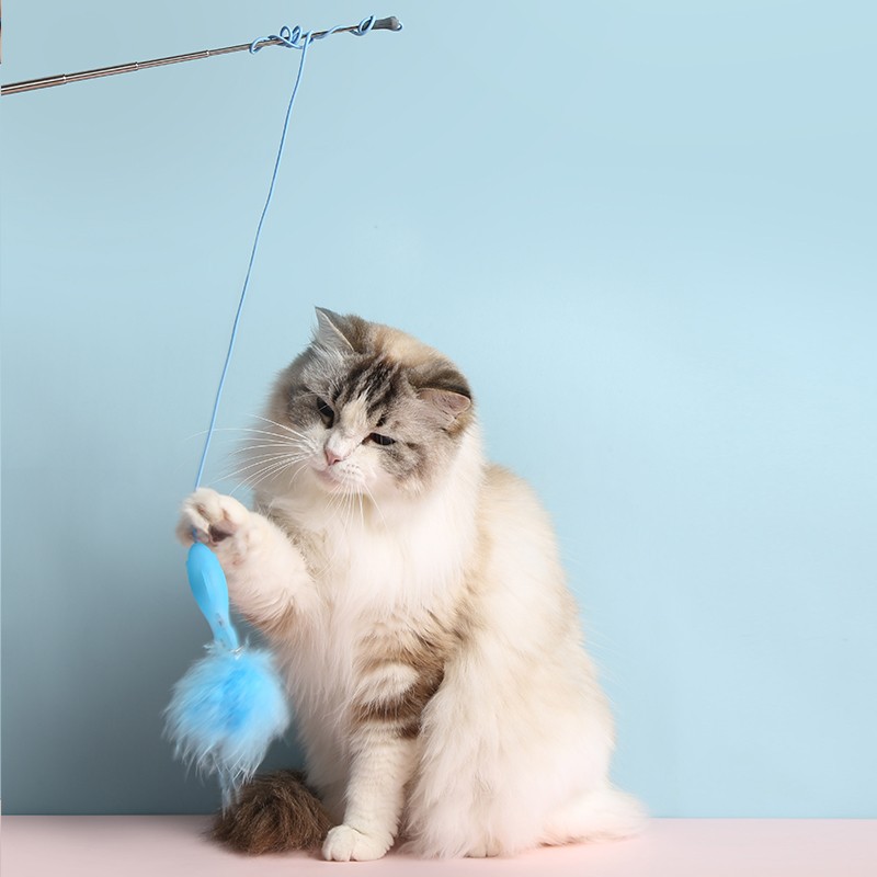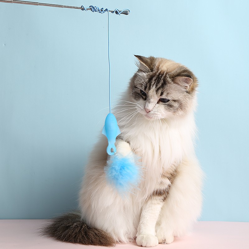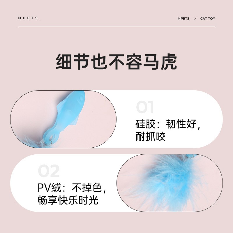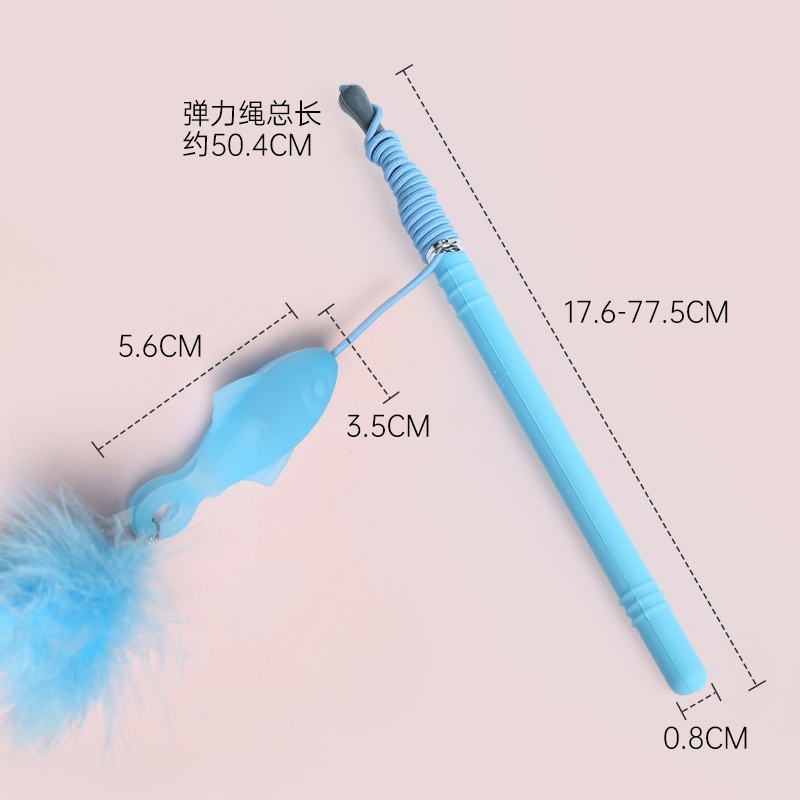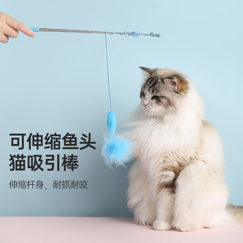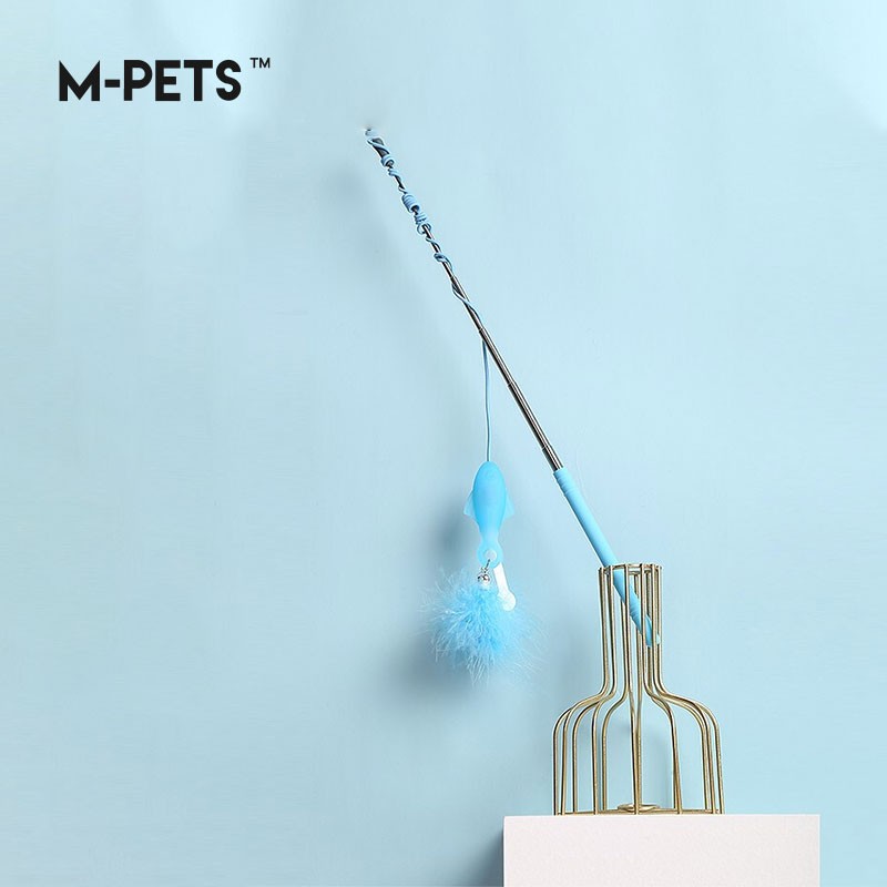 M-PETS 加长伸缩杆羽毛逗猫棒猫玩具幼猫成猫自嗨耐咬硅胶小鱼猫咪吸引棒宠物用品(蓝色单只装)