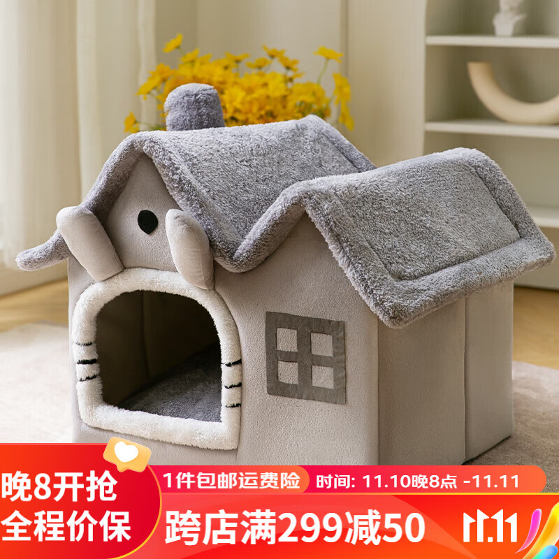 嬉皮狗猫窝四季通用房子型冬天保暖宠物猫咪床冬季可拆洗幼猫封闭式狗屋 升级豪华双顶龙猫款【2022新款】 中号:44*34*39cm(适合15斤内宠物)