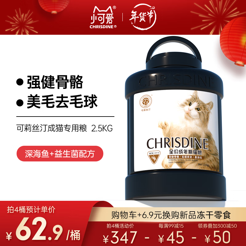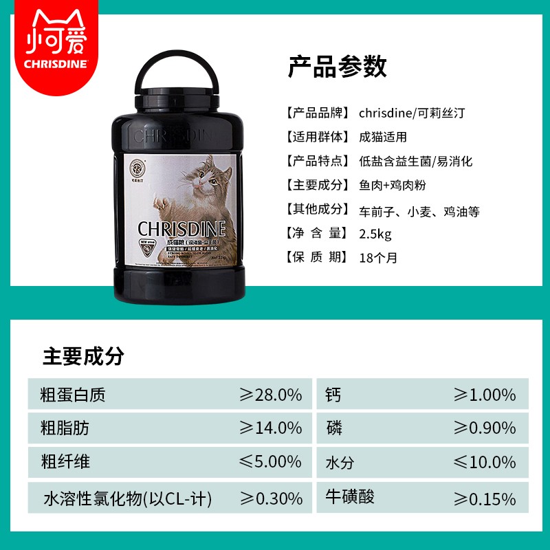 CHRISDINE可莉丝汀猫粮 天然桶装宠物主粮2.5KG 【成猫粮】靓丽毛发