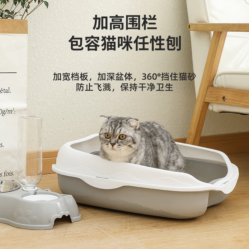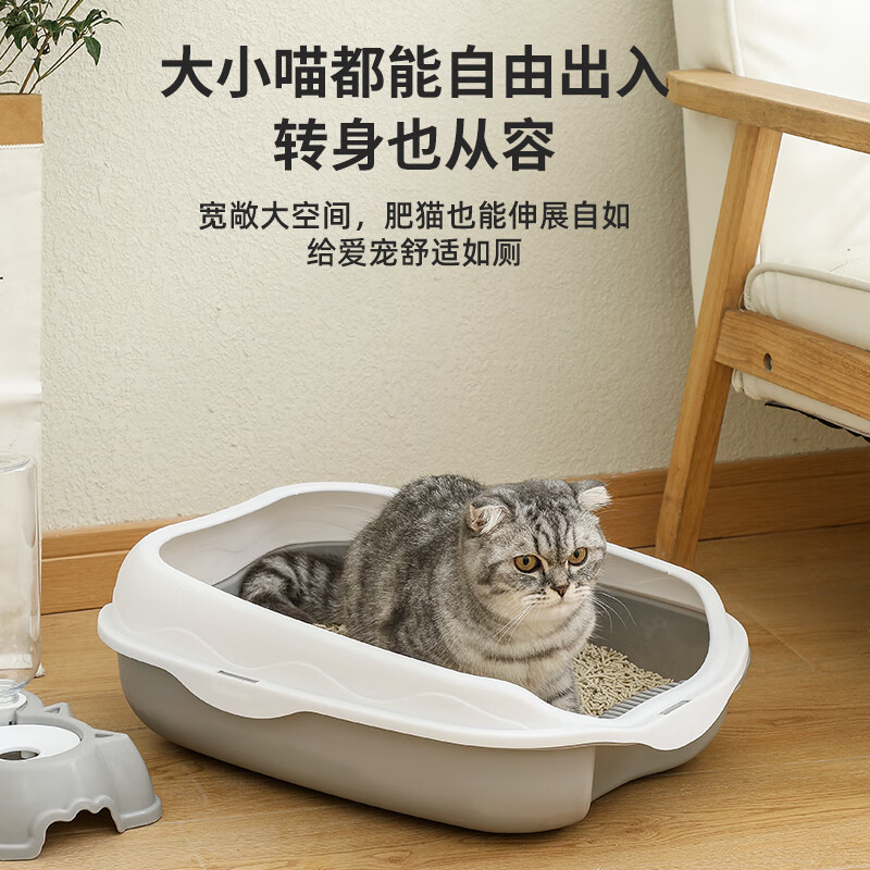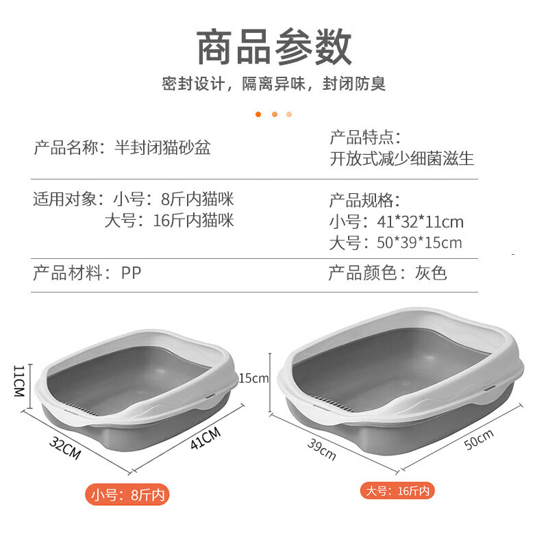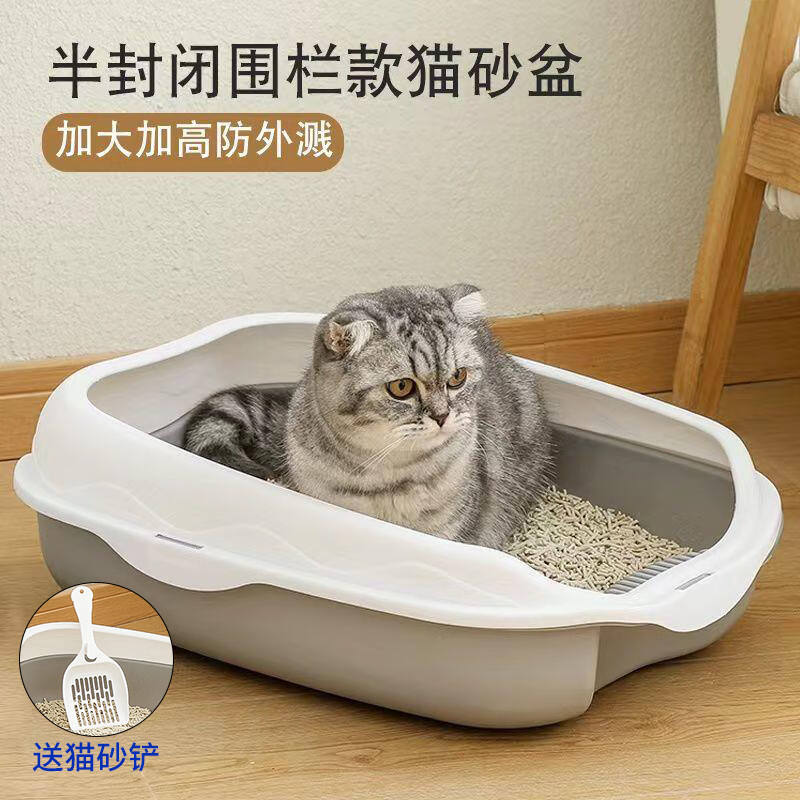 嘻哈尾巴猫砂盆半封闭猫厕所防外溅猫屎盆猫沙盆带猫砂铲 灰色中号