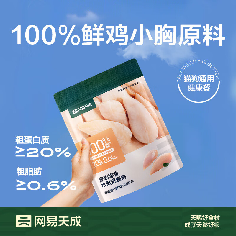 网易严选 宠物猫狗通用零食清煮鸡胸肉细嫩胸脯肉 150g/包