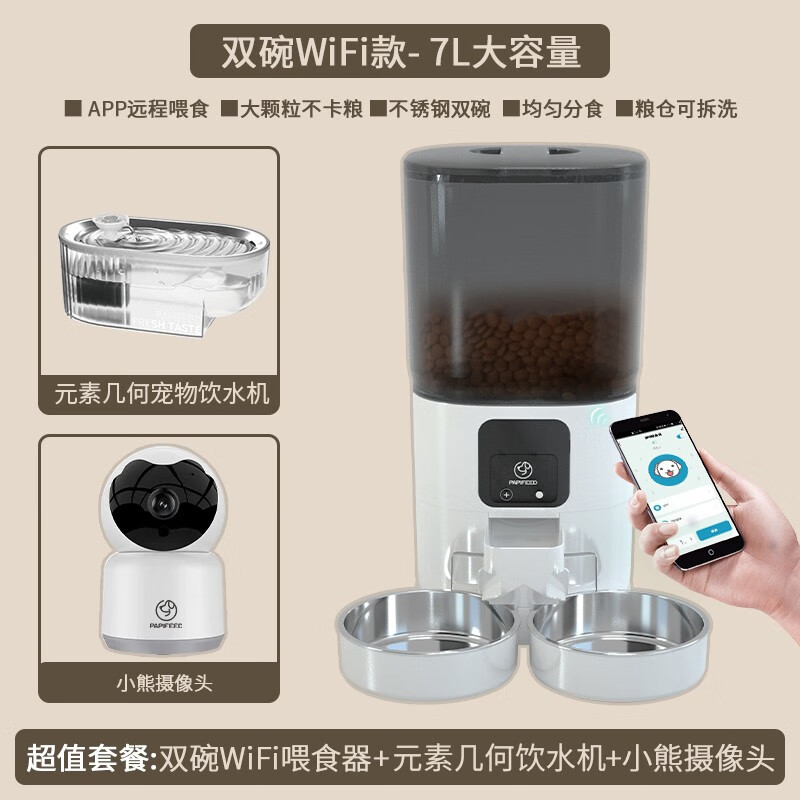 PAPIFEED猫咪智能双碗喂食器猫粮自动定时定量狗粮投食机wifi远程宠物喂食 WiFi款喂食器 饮水机 小熊摄像头