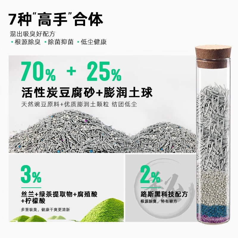 路斯(Luscious)猫砂 豆腐猫砂膨润土混合猫砂 活性炭矿砂除臭无尘易结团可冲马桶 【绿茶】混合猫砂 2.4kg
