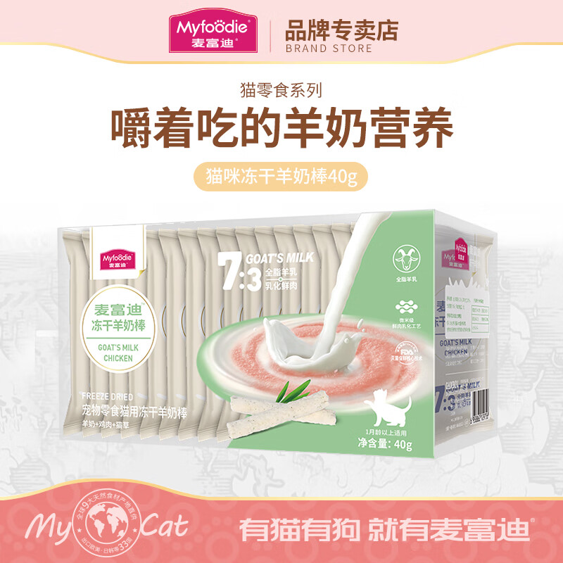 麦富迪猫零食冻干羊奶棒 幼猫成猫营养增肥发腮宠物零食 羊奶猫草味40g