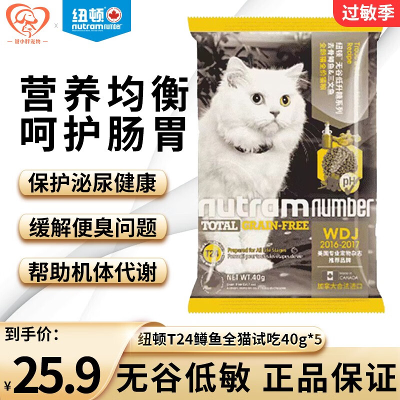 纽顿(Nutram Number)加拿大进口纽顿T24深海鱼美毛配方0谷物全阶段猫粮 T24鳟鱼全猫试吃200g