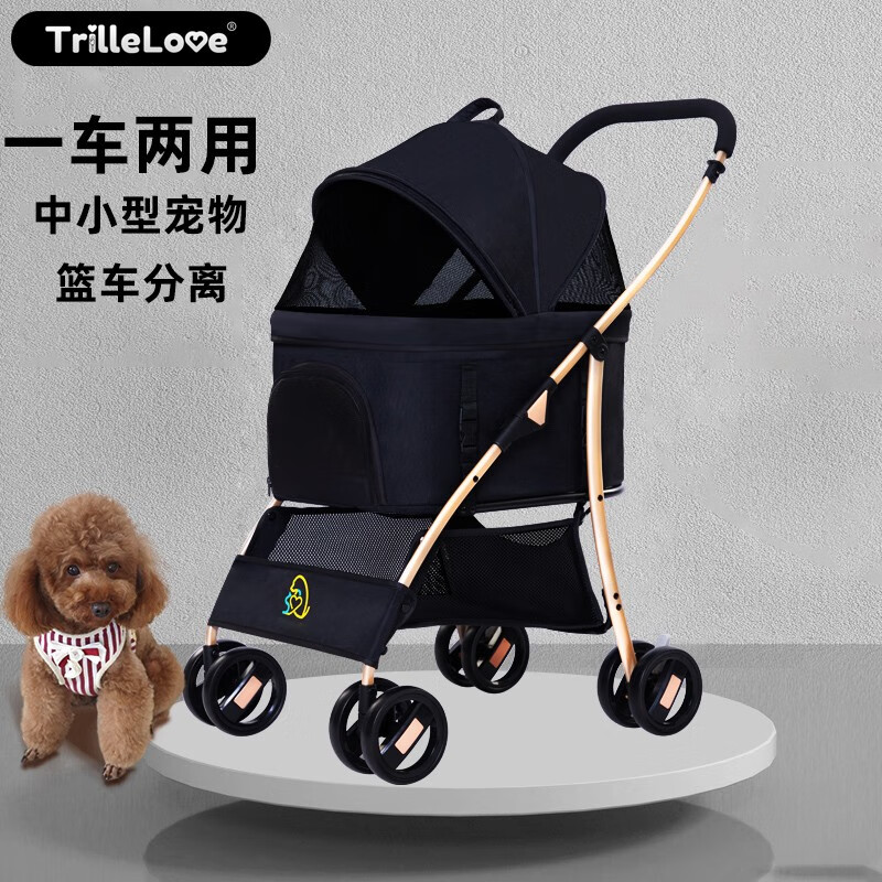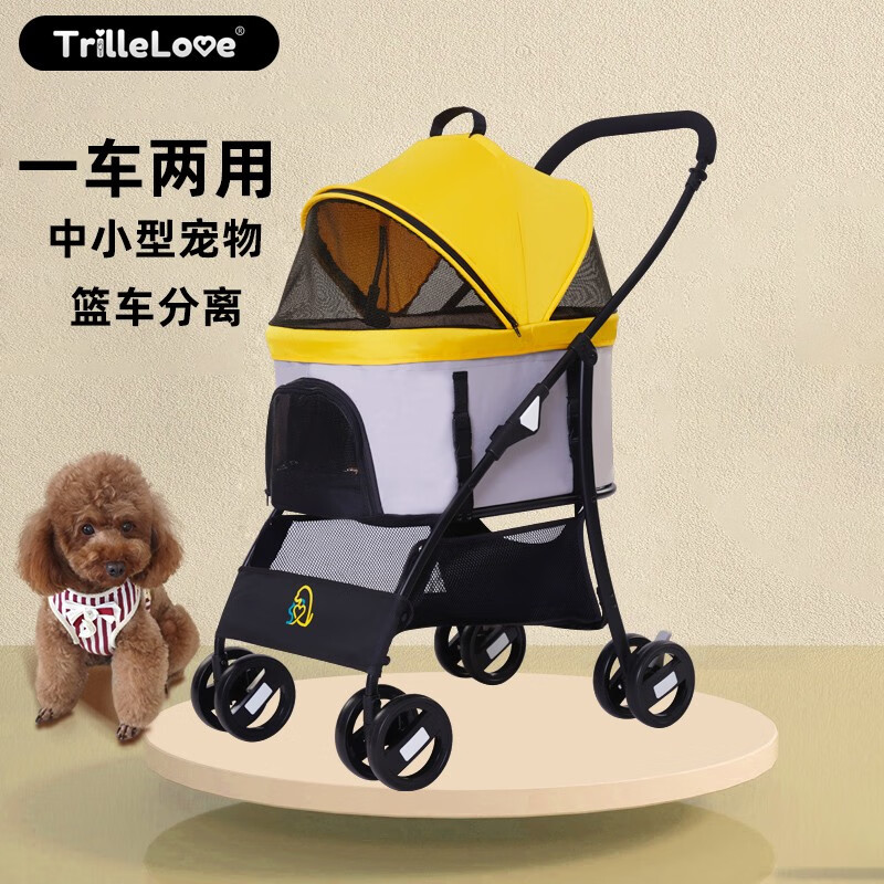 TRILLE LOVE宠物推车中小型狗狗猫咪外出小推车可分离轻便折叠小拉车遛狗溜猫 柠檬黄