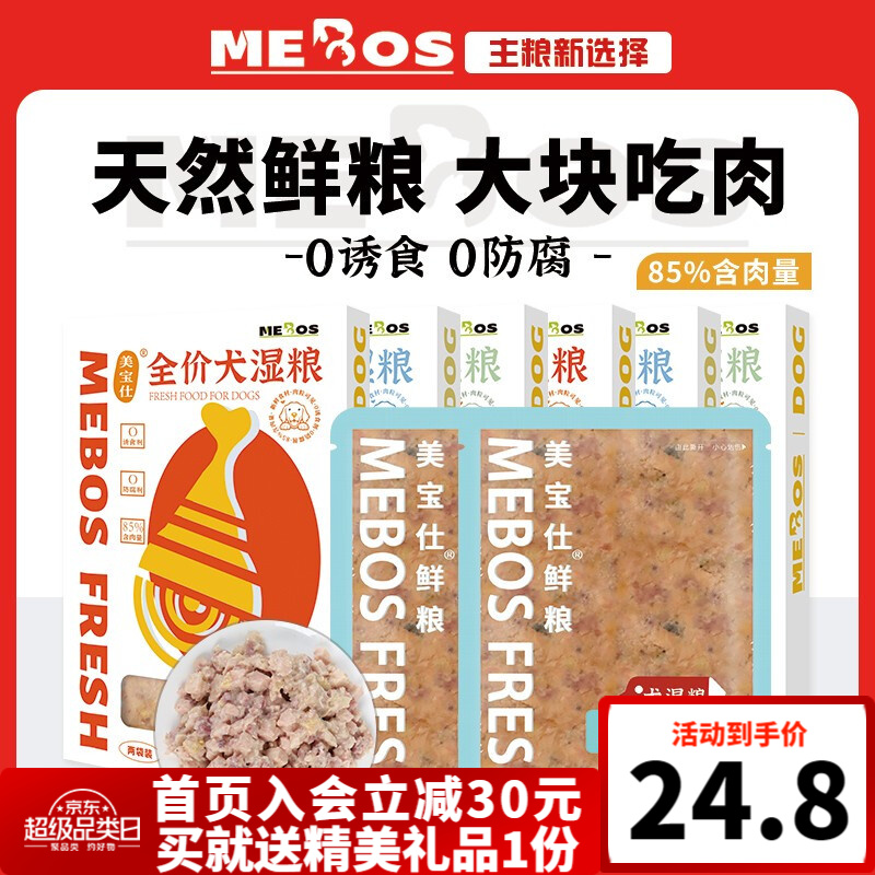 美宝仕 狗粮狗主食罐头全价犬鲜粮湿粮无添加鲜食狗粮幼犬成犬主食罐 尝鲜装120g*2包(口味随机)