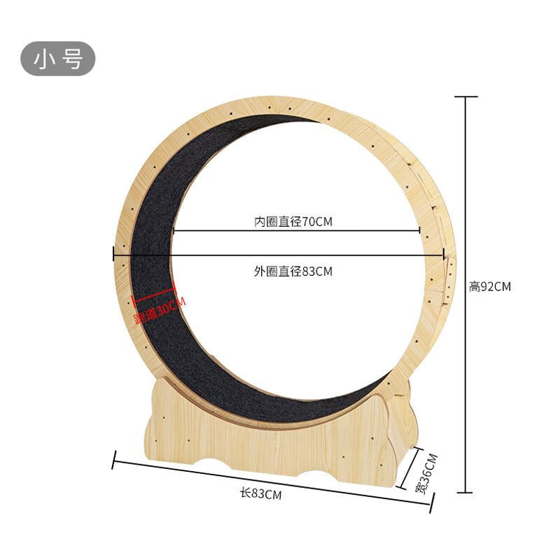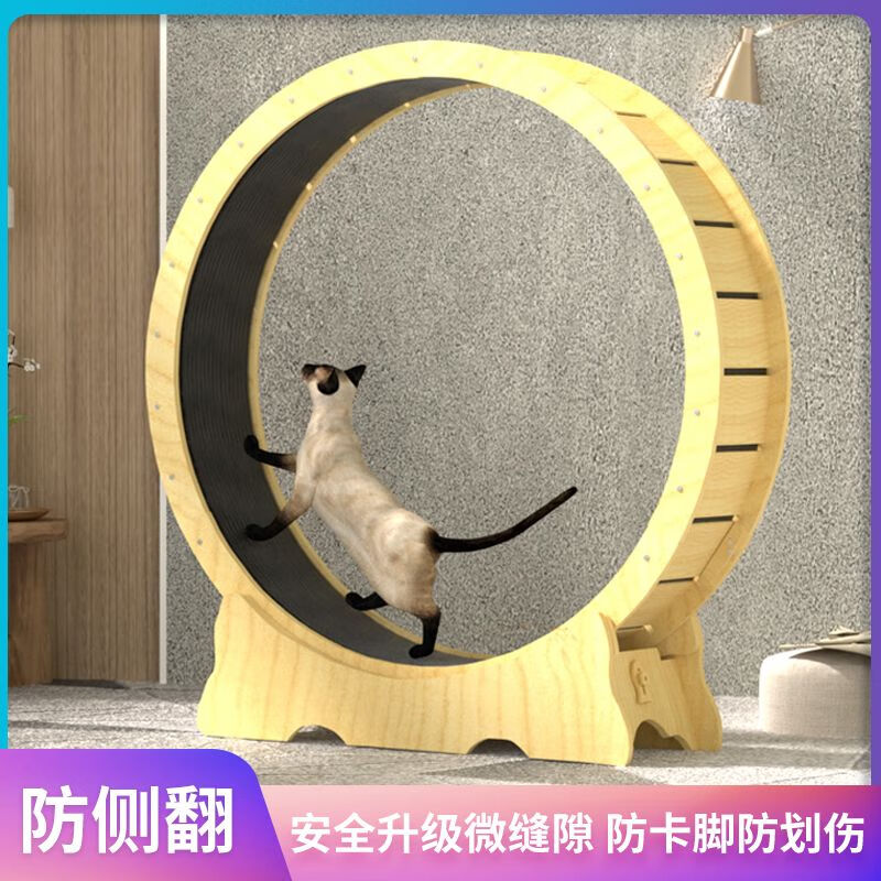 宠物猫咪跑步机猫跑轮猫运动自安装猫爬架高纤猫滚轮猫跑步机静音 基础款小号 外径83cm 原木色高纤家具板