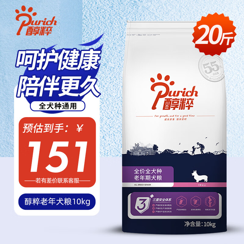 醇粹狗粮纯粹泰迪柯基老年犬大龄犬中小型狗狗主粮黑标通用型 全价营养老年犬粮10kg