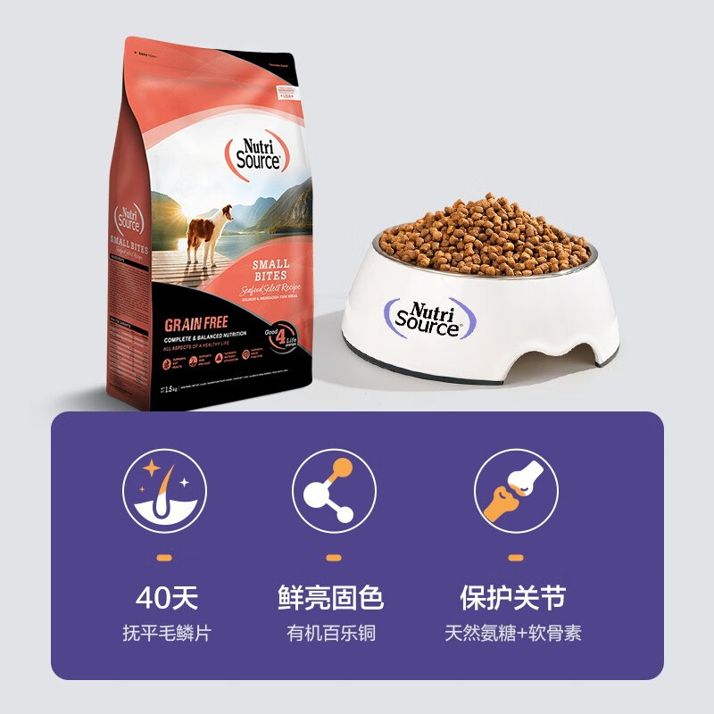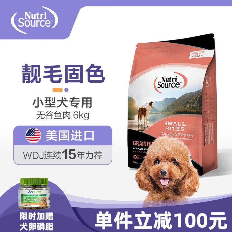 NUTRISOURCE新萃狗粮美国进口小型犬泰迪比熊成幼犬通用无谷低敏狗粮鱼肉味 6kg