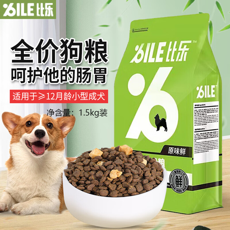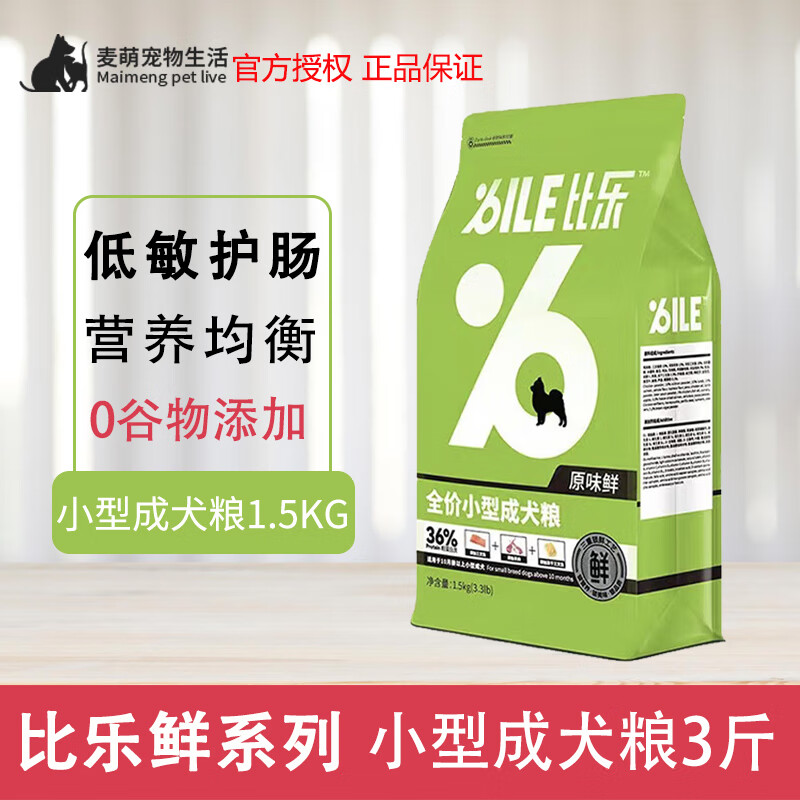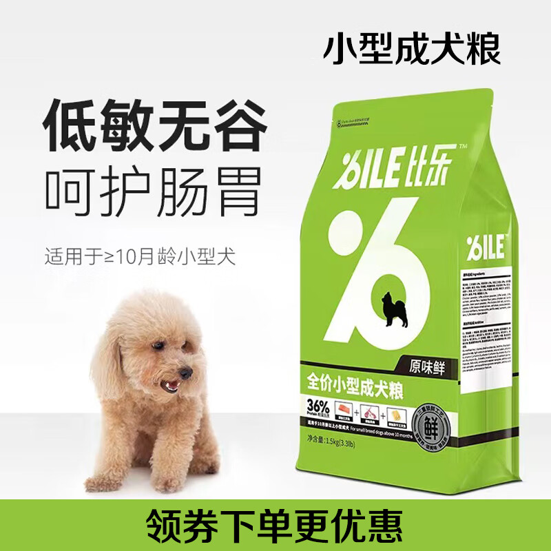 比乐狗粮原味鲜系列小型成犬狗粮通用狗粮泰迪比熊狗粮低敏无谷配方 小型成犬粮1.5kg