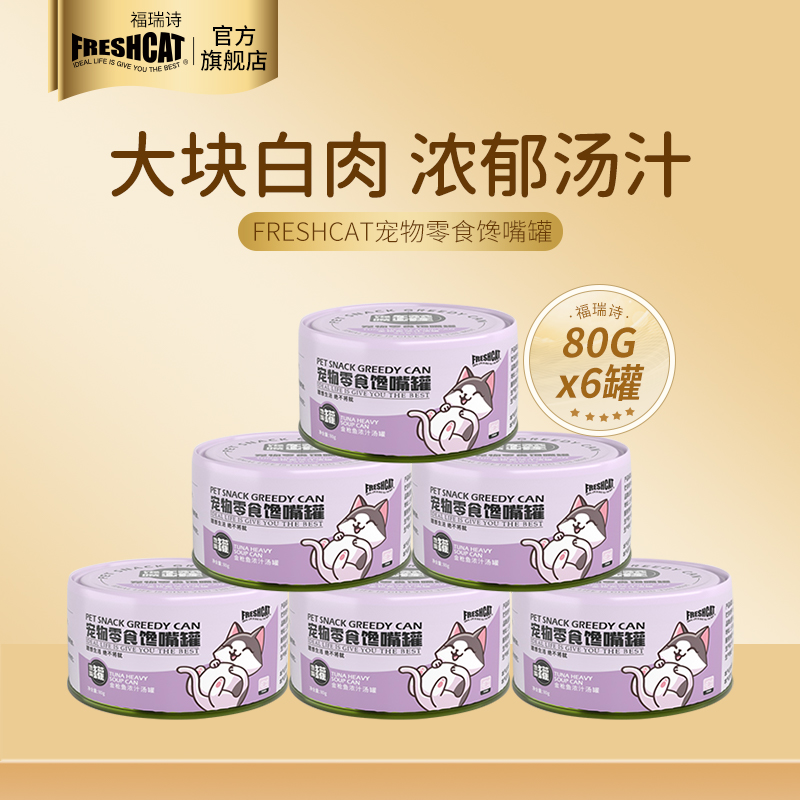 福瑞诗(Freshcat)猫罐头 浓汤白肉馋嘴罐成幼猫通用宠物零食 (金枪鱼浓汁汤罐)80g*6罐
