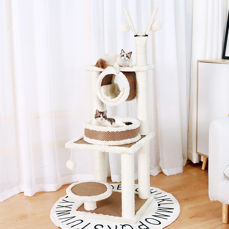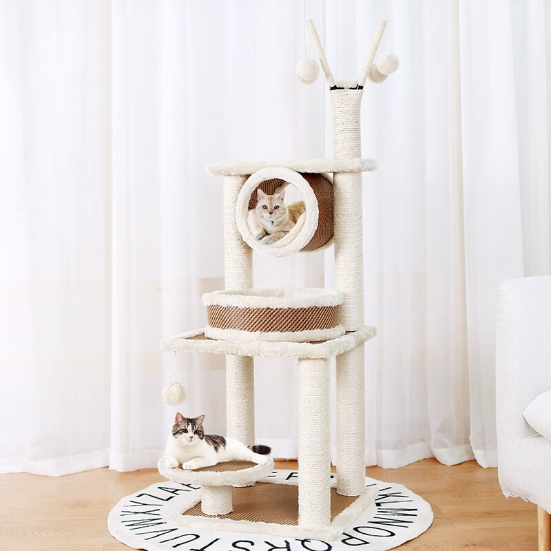 【升级加固加高】宠多乐 猫爬架大型豪华多层猫架子猫窝剑麻猫抓板耐磨猫抓柱带跳台猫树猫玩具宠物猫咪用品 藤席猫爬架