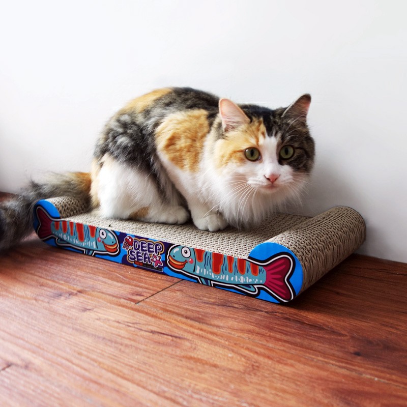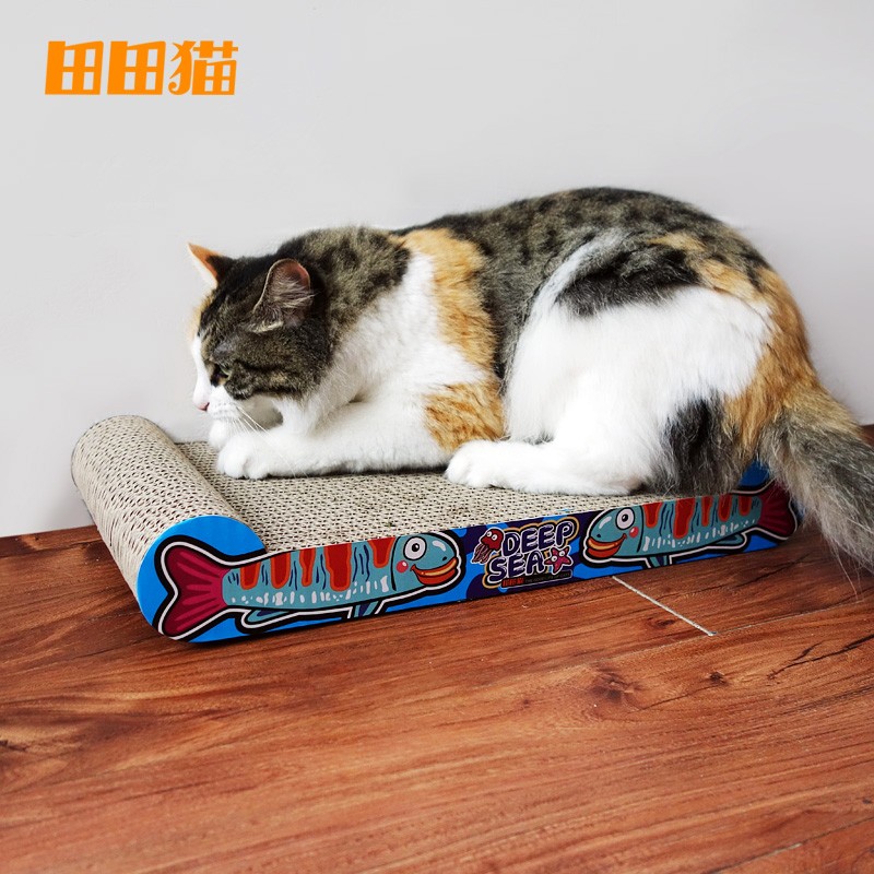 田田猫平板瓦楞纸耐抓耐磨幼猫玩具猫抓板猫磨爪猫沙发猫用品 骨头深海蓝