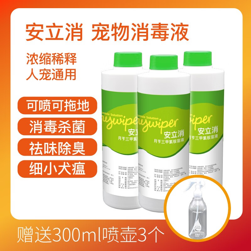 瑞普安立消 宠物环境用消毒液消毒水猫咪除臭浓缩液宠物除臭剂祛味剂猫砂盆除臭用品附喷壶 500ml*3