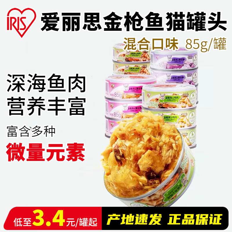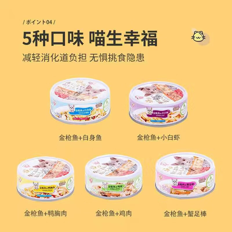 爱丽思猫罐头猫咪湿粮零食补水营养增肥发腮成猫幼猫金枪鱼罐头 混合口味 85g*12罐(实惠装)