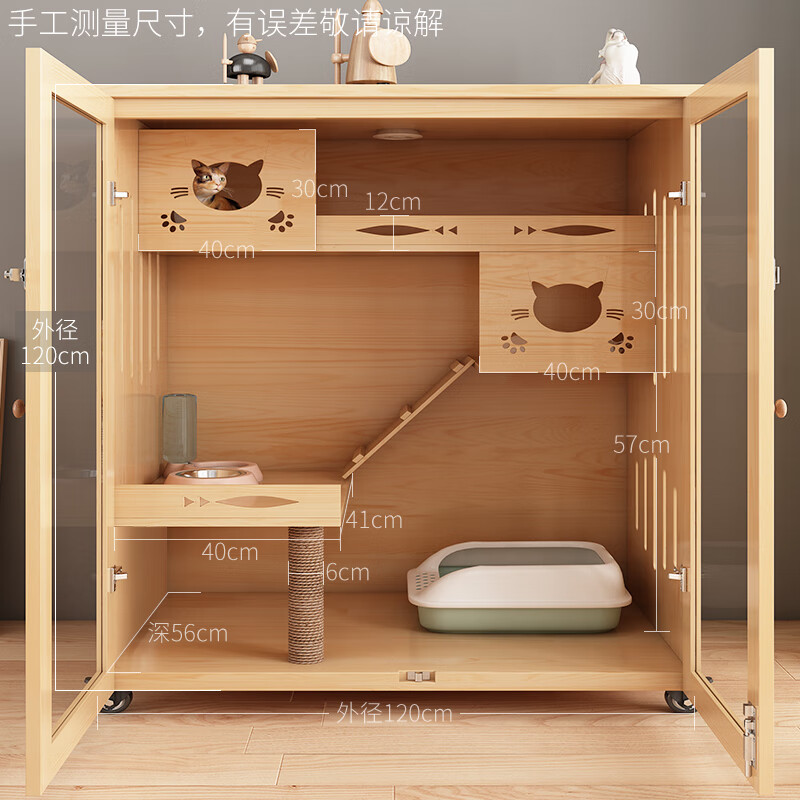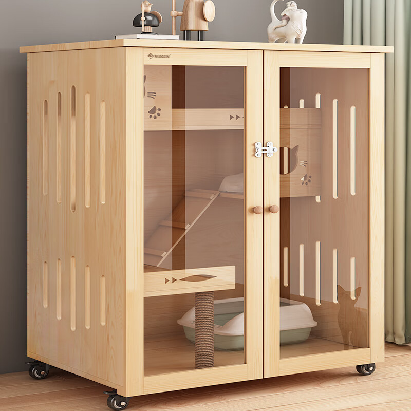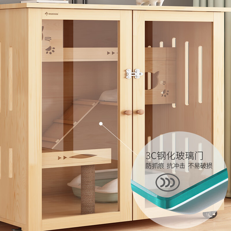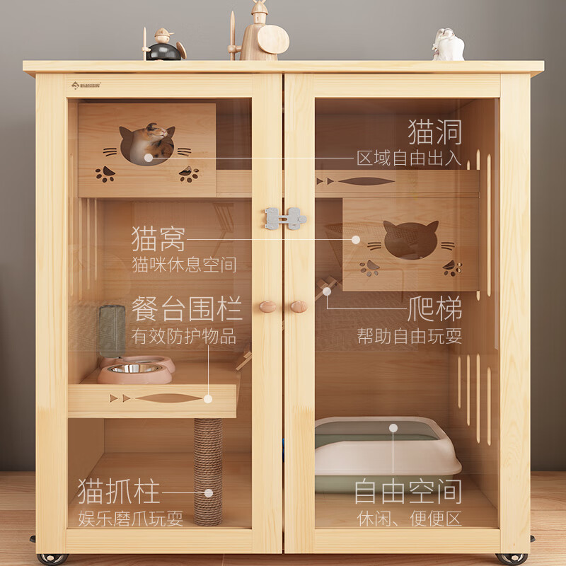 全景玻璃猫别墅豪华猫柜大空间猫笼家用实木猫屋室内猫咪房子猫舍