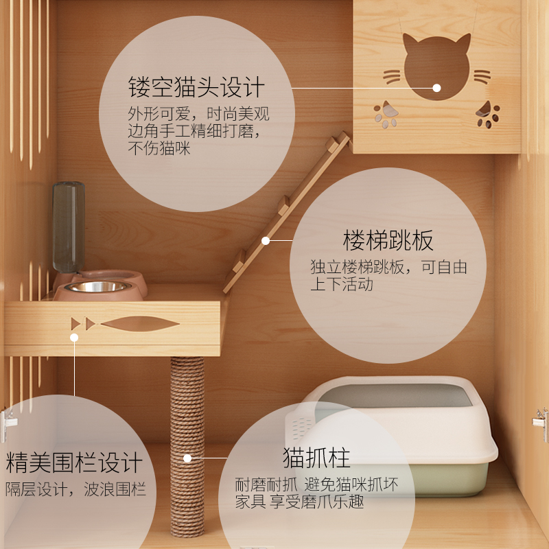 猫笼别墅超大自由空间家用室内带厕所一体实木猫咪豪华柜宠物猫屋