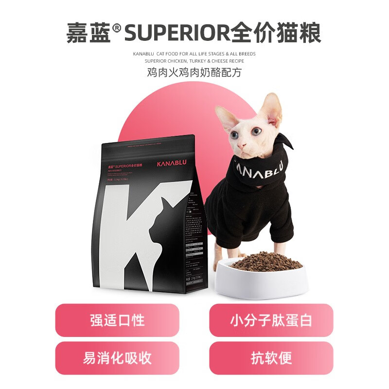 KANABLU嘉蓝SUPERIOR全价猫粮成猫防软便猫粮十大品牌排行榜无谷鸡肉干粮 鸡肉火鸡肉奶酪【1.5kg】