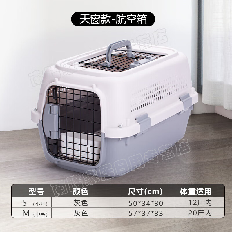 波奇多 猫咪航空箱宠物托运箱猫笼狗笼子小中型犬外出便携猫包装狗箱 [天窗款]灰色-贈隔尿板 挂碗 /M-中号航空箱[20斤以内犬猫]