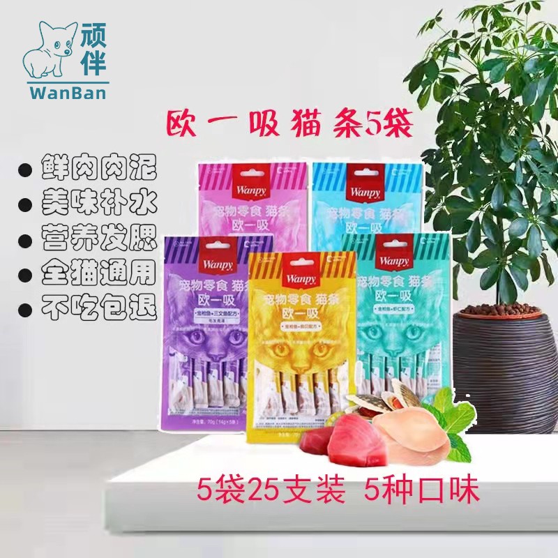 顽皮(Wanpy)猫条湿粮猫咪零食欧一吸成猫幼猫鲜封包猫咪增肥罐头14g*5条袋装 五口味各1袋【口味不好指定】