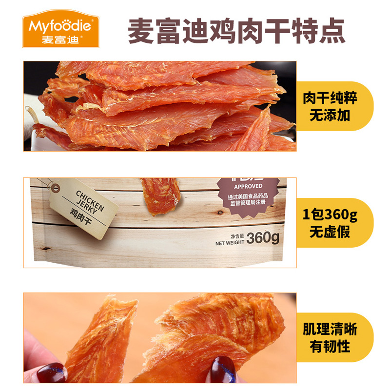 麦富迪狗狗零食训练奖励肉干磨牙洁齿零食鸡胸肉小型犬成犬幼犬泰迪柯基 北美原鸡肉干360g