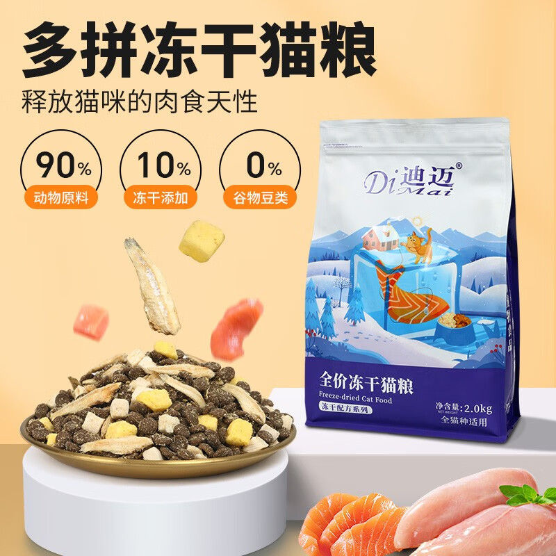 迪迈多拼冻干无谷猫粮4斤 海陆盛宴成幼猫粮鸡鱼肉双营养全阶猫咪主粮
