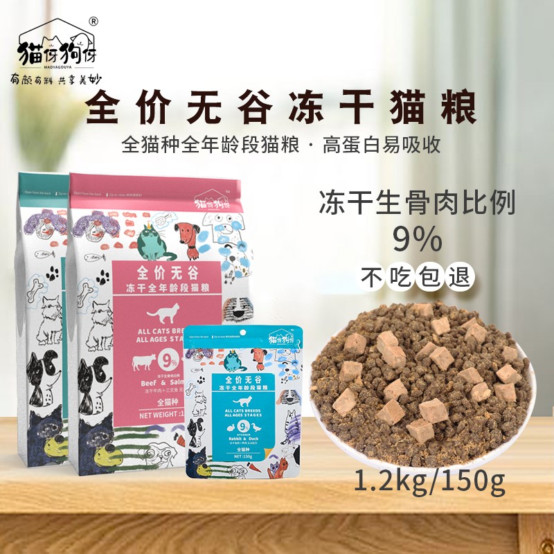 猫伢狗伢 天然全阶冻干猫粮成猫粮鱼肉海洋鱼深海鱼粮 牛肉三文鱼口味1.2kg