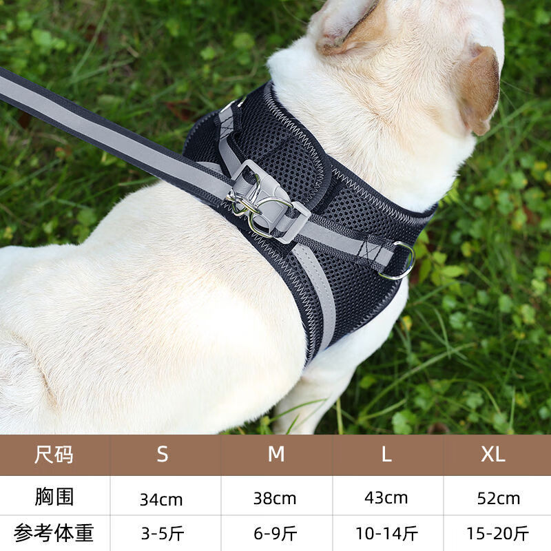 【精选】中型小型犬背心式狗狗牵引绳泰迪狗链子遛狗绳宠物胸背带狗狗用品地狼 2米绳子Z字型包边狗狗款【黑色】 M码(亏完为止)