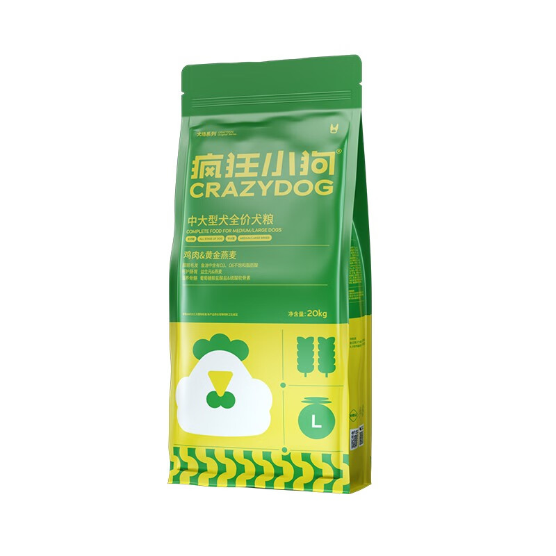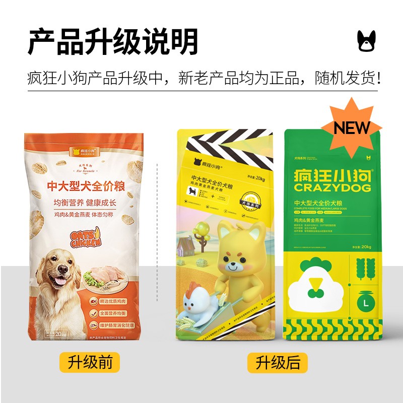 疯狂的小狗 狗粮40斤鸡肉燕麦20kg 金毛萨摩耶拉布拉多中大型犬粮幼犬成犬天然宠物粮