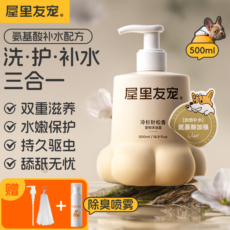 屋里友宠宠物狗狗猫沐浴露犬用除臭除螨除虱跳蚤止痒留香无刺激洗护一体 氨基酸补水款