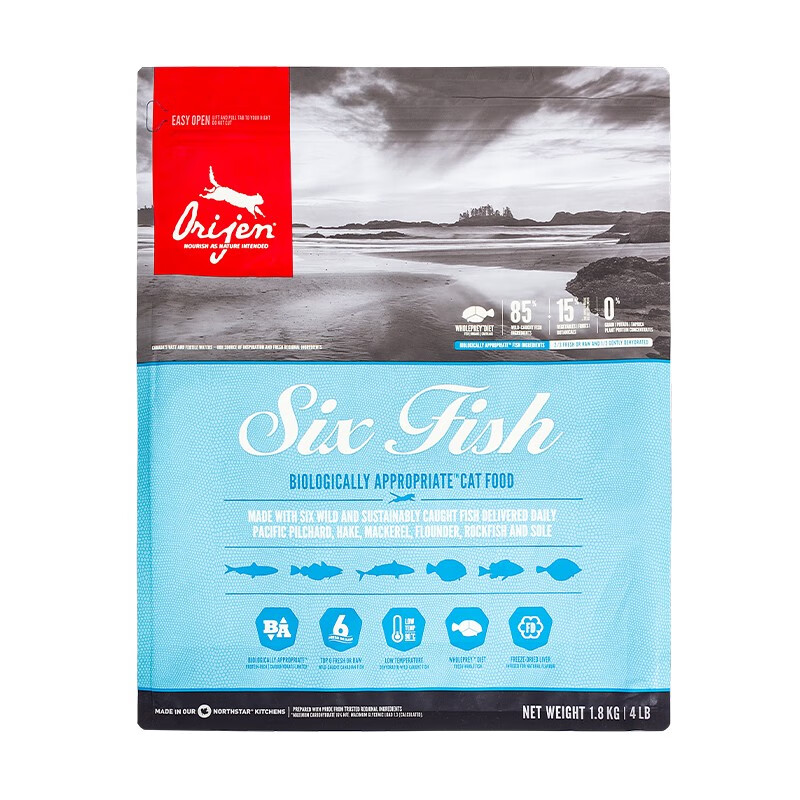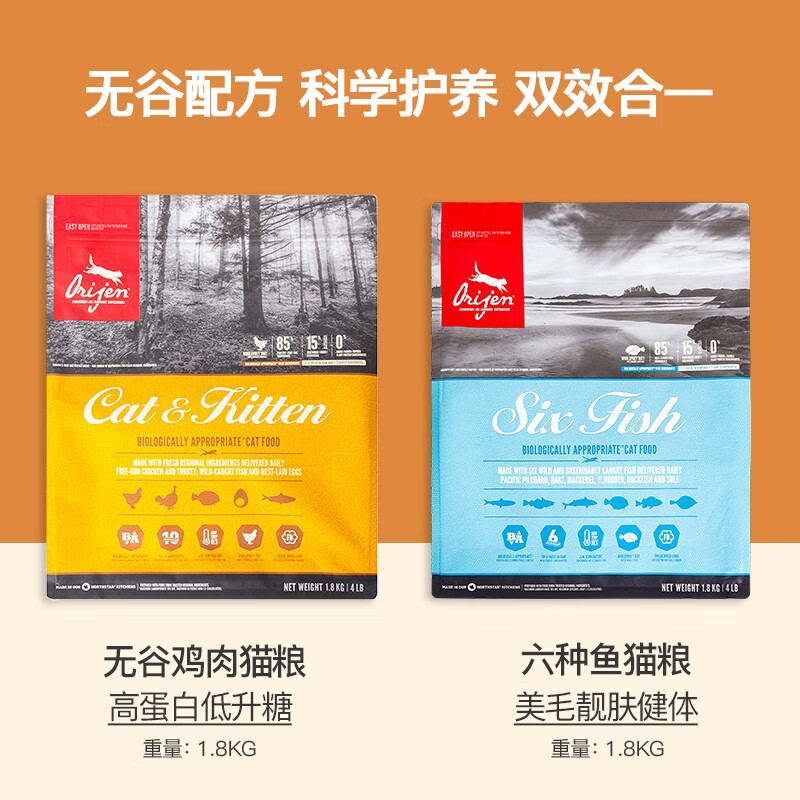 【原厂直采】Orijen渴望原始猎食鸡肉六种鱼配方无谷低敏防软便成幼猫全猫粮 【有效期:22年9月】六种鱼猫粮1.8kg