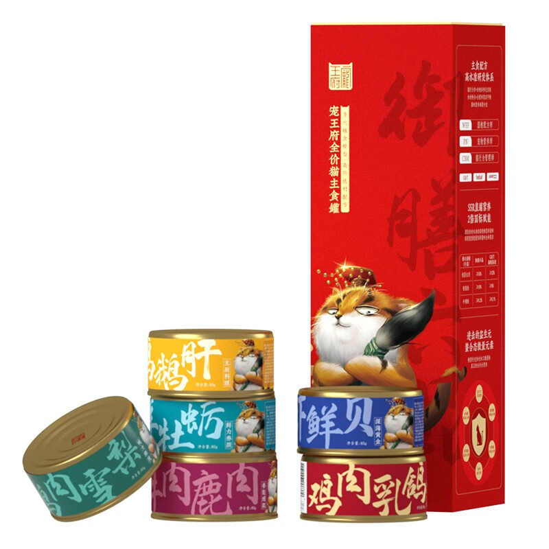 宠王府御膳六品猫主食罐头85g*6成幼猫补钙增肥发腮营养湿粮 混合口味 85g*6罐