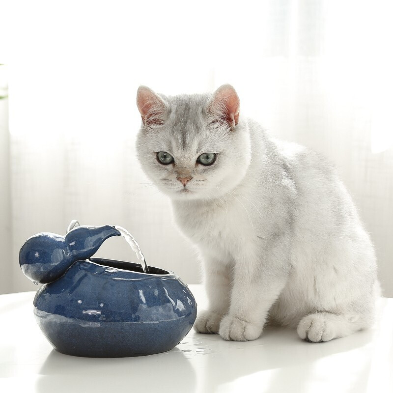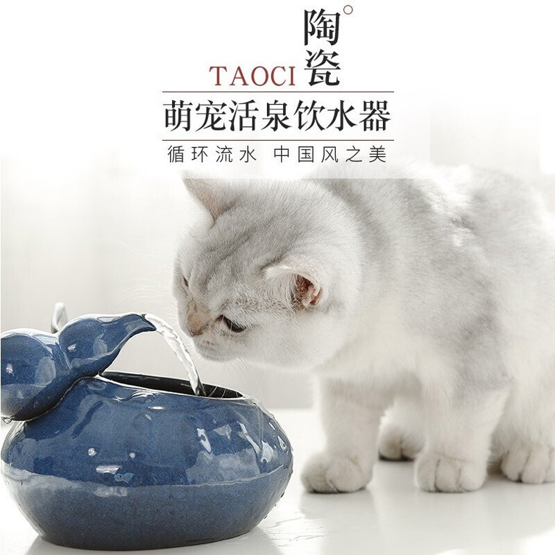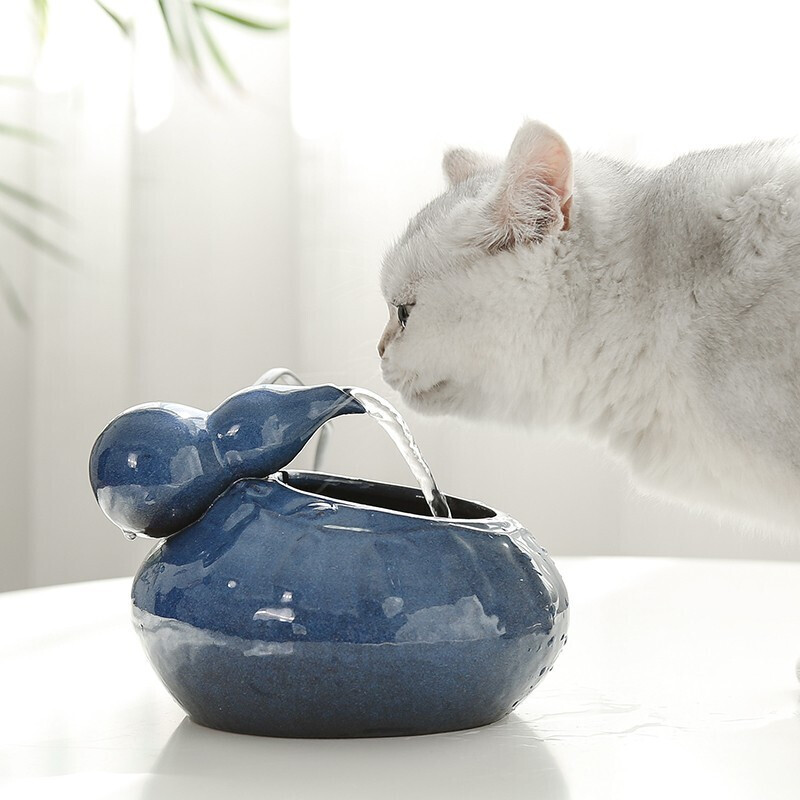 HKNA 陶瓷猫咪饮水机自动循环流动水宠物智能饮水机宠物狗狗用品喂水喝水喂食机不湿嘴饮水器 葫芦静谧蓝(水泵 6片滤棉)