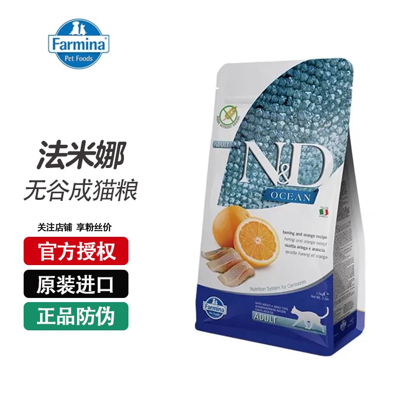 法米娜猫粮成猫粮石榴鸡肉法明娜猪肉苹果鲱鱼甜橙 海洋系列【鲱鱼甜橙】成猫粮1.5kg