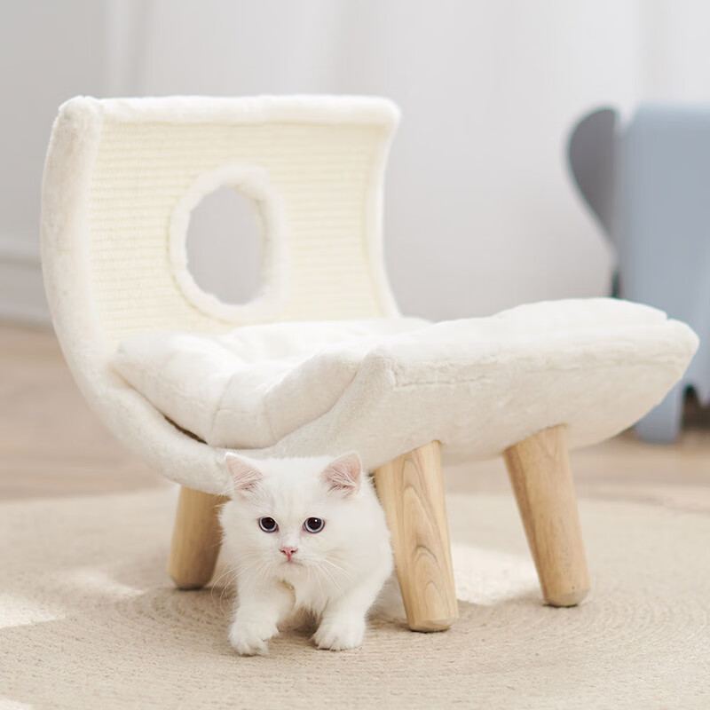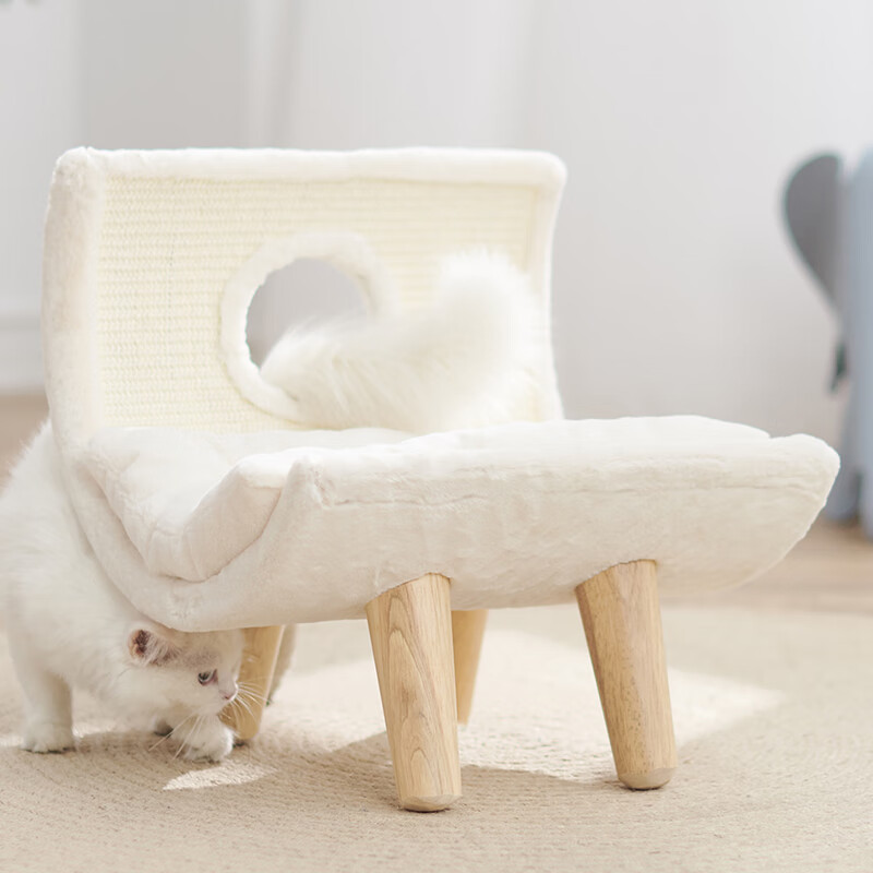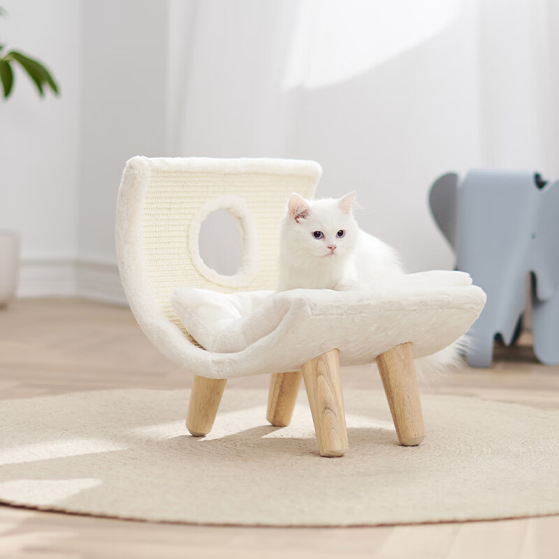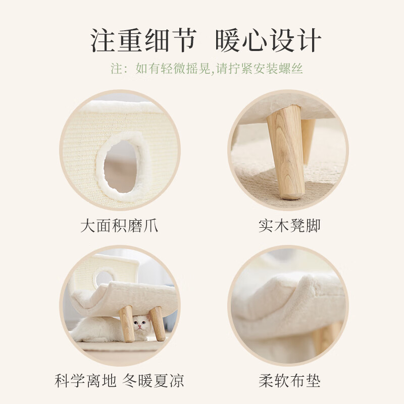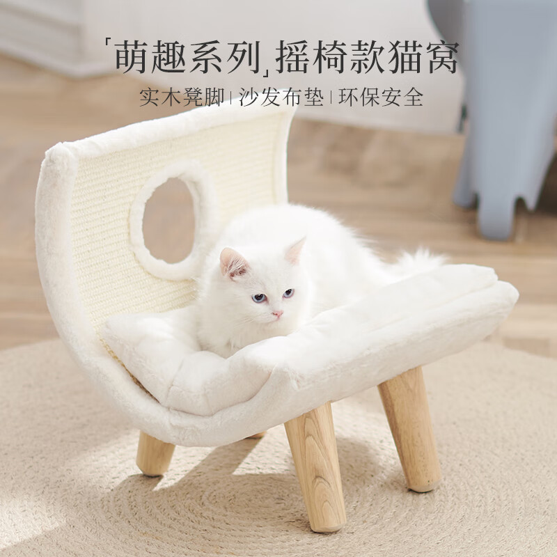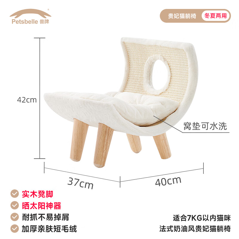 兽牌 实木贵妃猫躺椅猫窝冬季保暖冬床剑麻猫抓板窝不掉屑 萌趣贵妇躺椅款