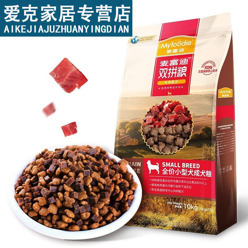 麦富迪(Myfoodie)麦富迪狗粮 无谷牛肉双拼金毛贵宾拉布拉多全价成犬粮10kg 小型犬 犬10kg