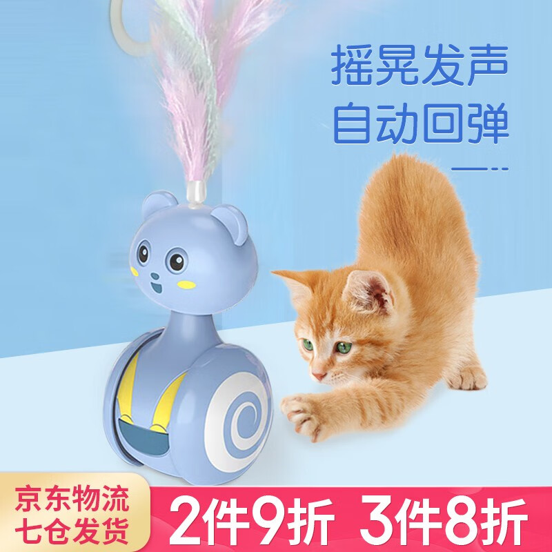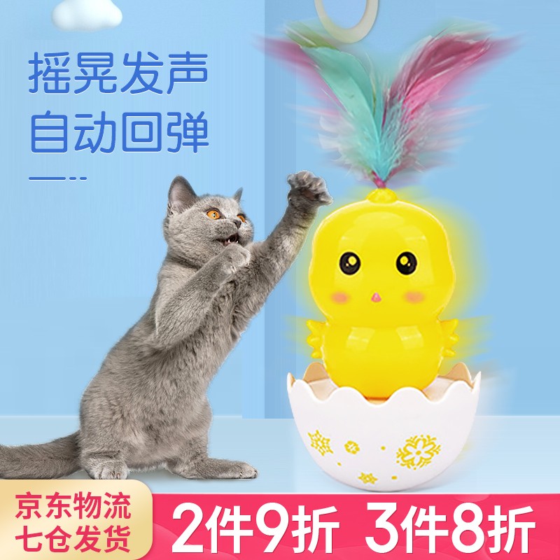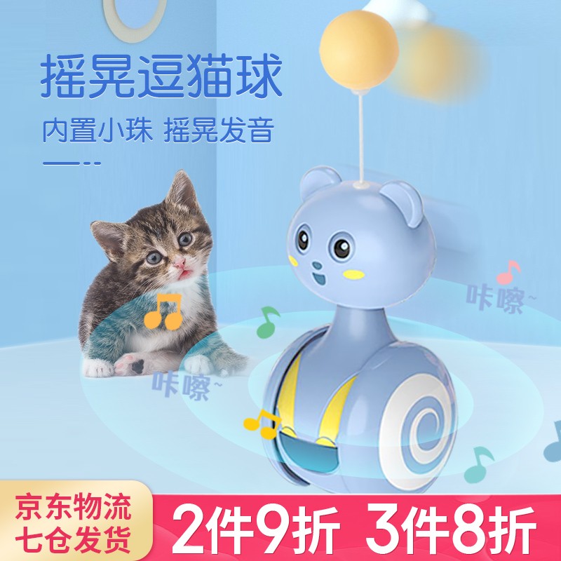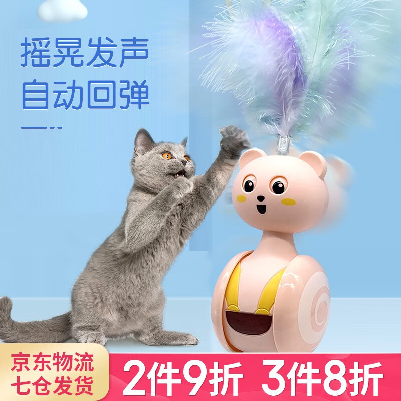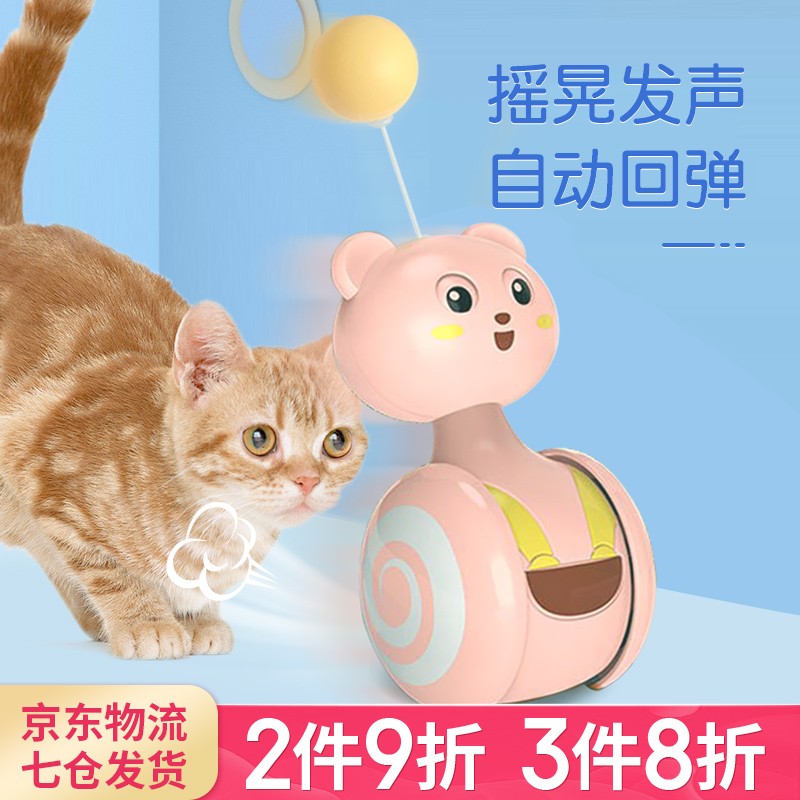 哈波比 新款逗猫发声玩具不倒翁薄荷逗猫棒猫咪自嗨神器成猫幼猫自动逗猫带羽毛磨牙发泄耐咬不变形 小球款 粉色小熊