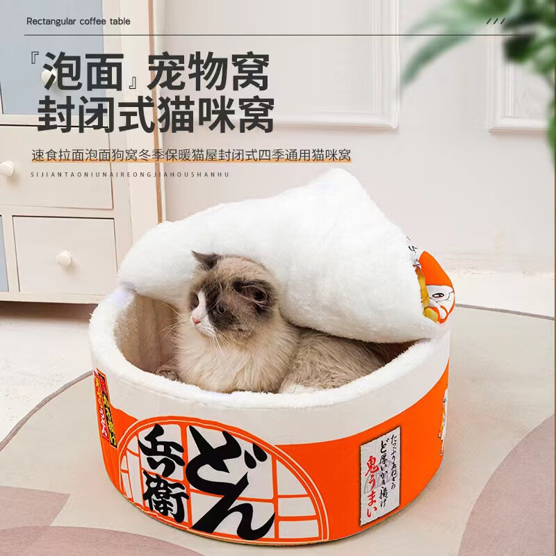华元宠具(hoopet)烁坭网红泡面桶狗窝小型犬狗狗拉面碗宠物窝冬季保暖封闭式圆形猫 香辣牛肉面 M-40cm*40cm*20cm