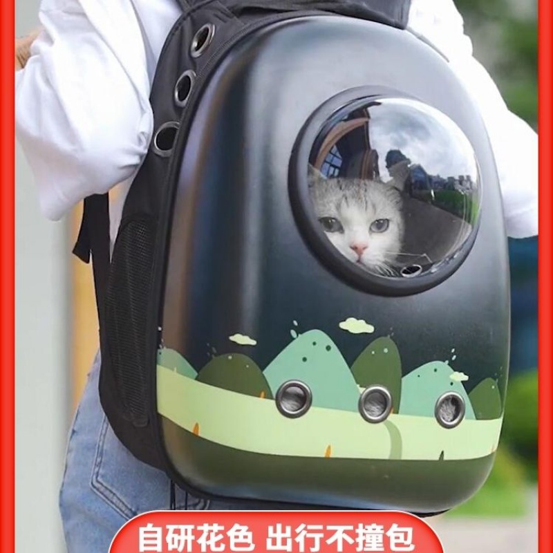 双肩包宠物包太空舱猫包大容量狗包透气背包猫咪包外出便携胸前包 12孔黑山(五件套)