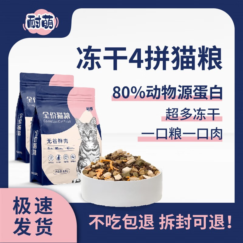OTHER耐萌[80%鲜肉含量]全价冻干无谷鲜肉成猫猫粮高蛋白幼猫增 四拼冻干鸡胸肉 冻干鸡肝 4kg桶装发货 储粮桶