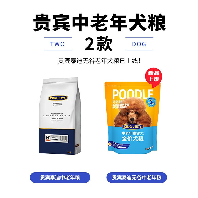 KINGJERRY狗粮贵宾泰迪狗粮中老年犬粮7岁以上专用中小型犬高钙天然粮2.5kg 10kg