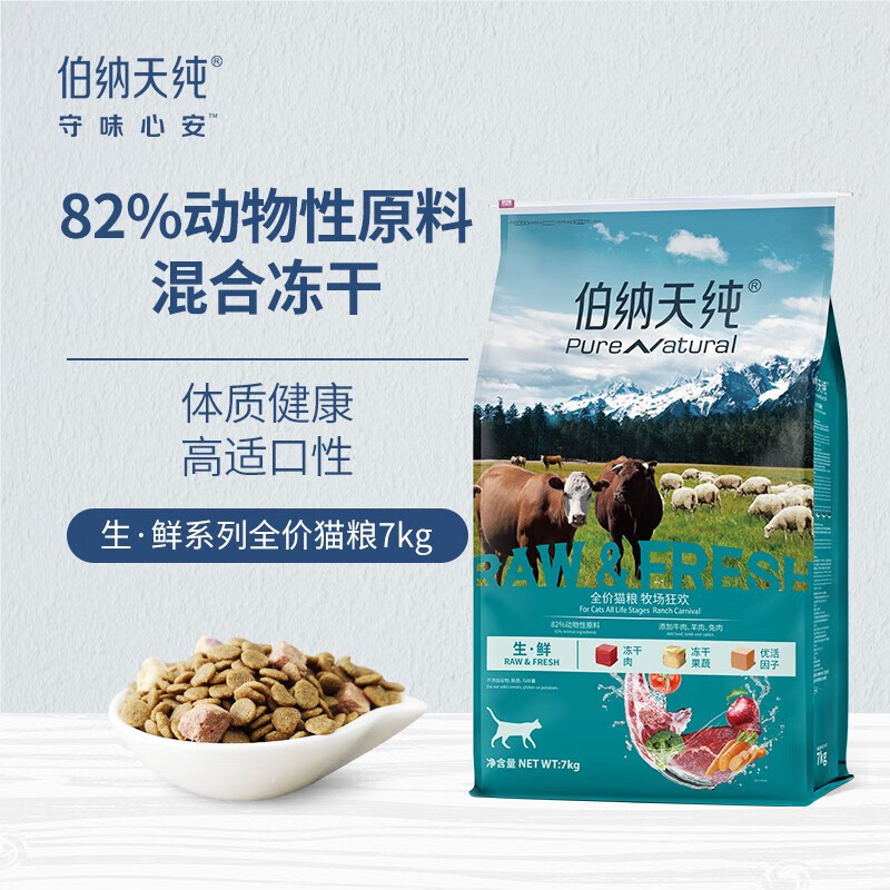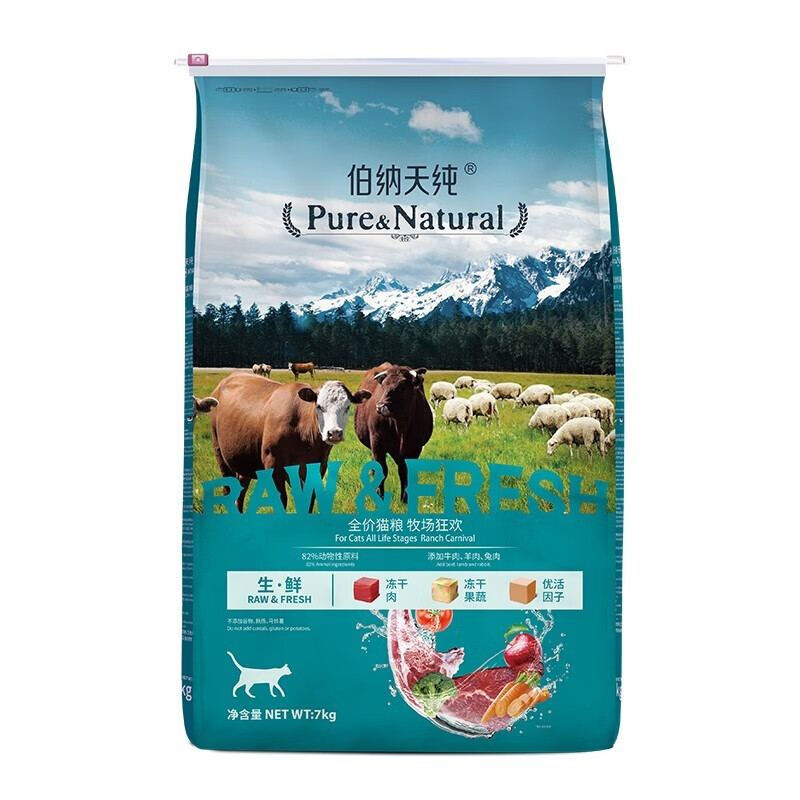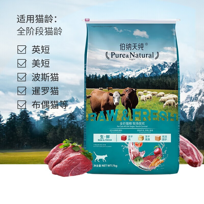 伯纳天纯猫粮三种肉成猫幼猫通用冻干猫粮牧场狂欢牛肉 羊肉 兔肉 牧场狂欢 | 牛肉鸡肉羊肉7kg