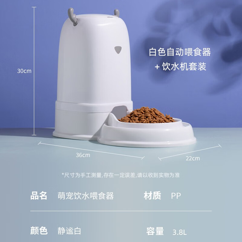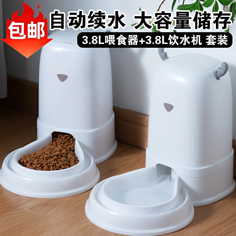 派乐特 宠物猫咪自动喂食器饮水机【套装】免插电猫碗狗碗狗食盆储粮桶猫水盆狗狗喝水器双碗猫粮投食器 3.8L喂食器 3.8L饮水器【套装】