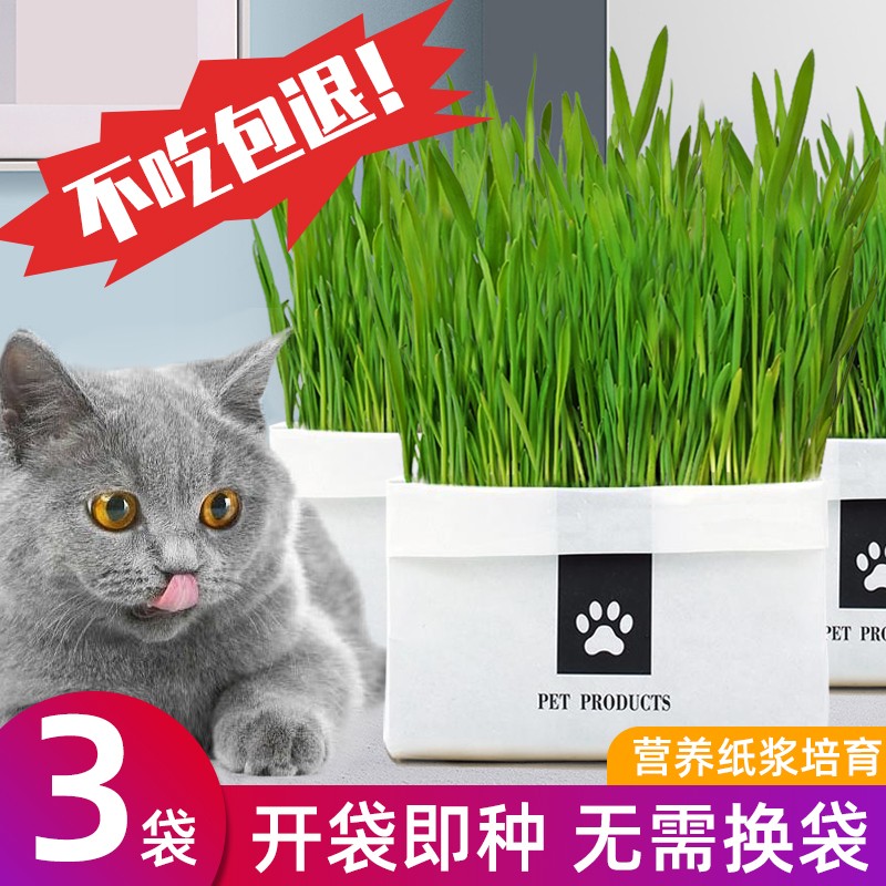 茨格曼 猫草种子水培猫草种植套装种去毛化毛排毛球猫咪零食 网红猫草 (3袋装)无土栽培 *