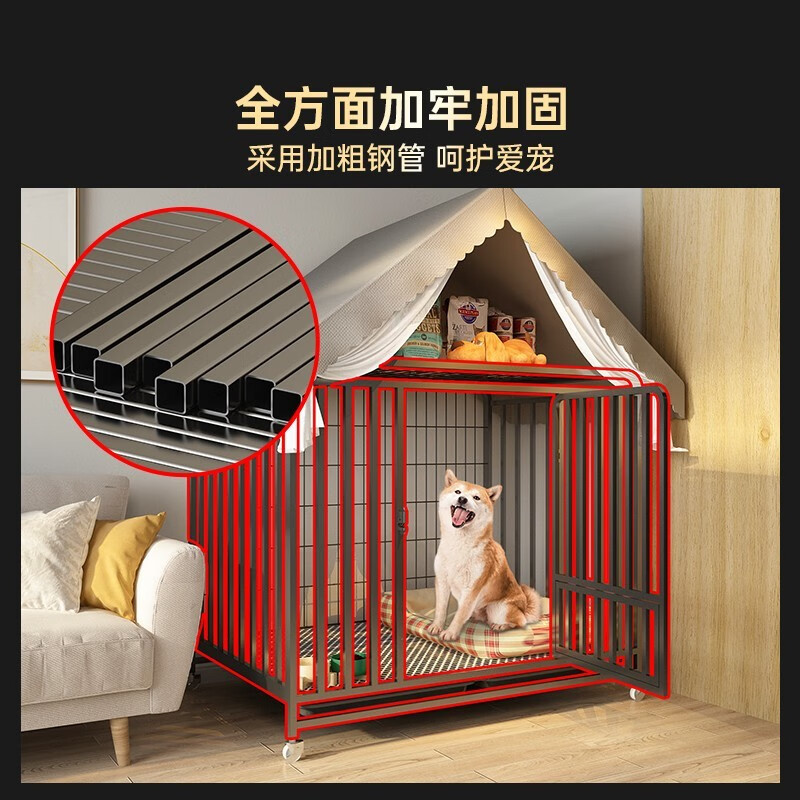 蔻丝狗笼子小型犬中型犬家用带厕所分离室内柴犬柯基狗屋狗狗宠物围栏 加粗加固【93*62*82】50斤内