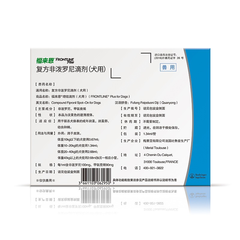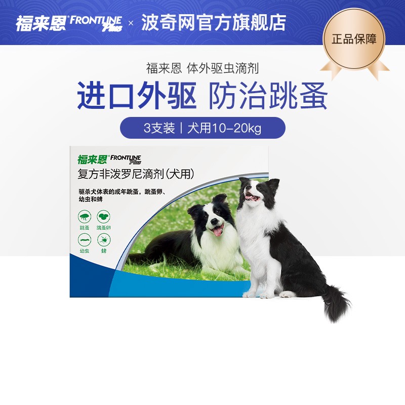 【官方授权】福来恩 体外驱虫滴剂 法国进口福莱恩宠物驱虫药 狗狗猫咪外驱打虫药 3支整盒丨犬用10-20kg